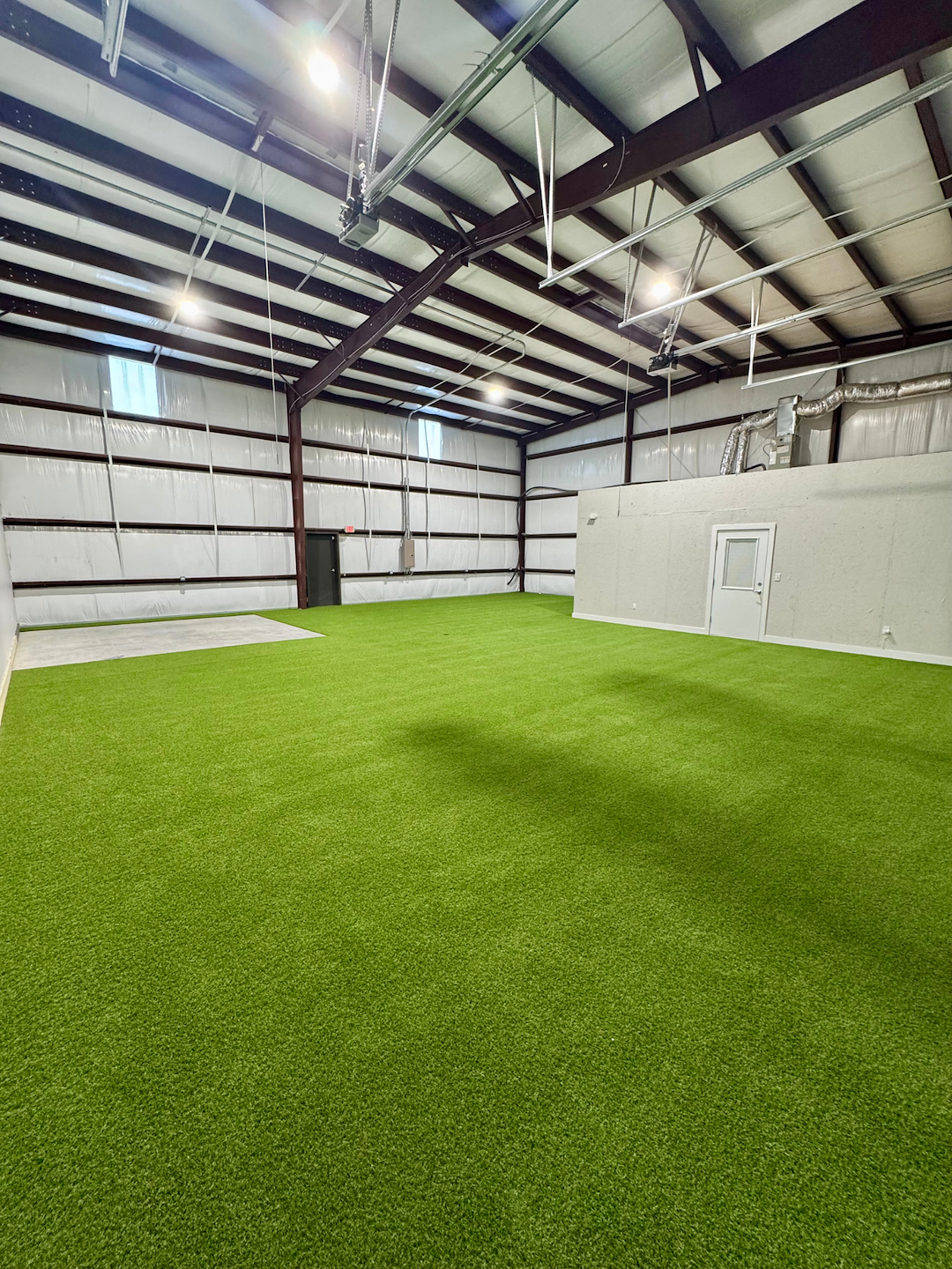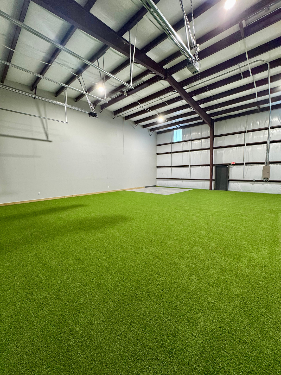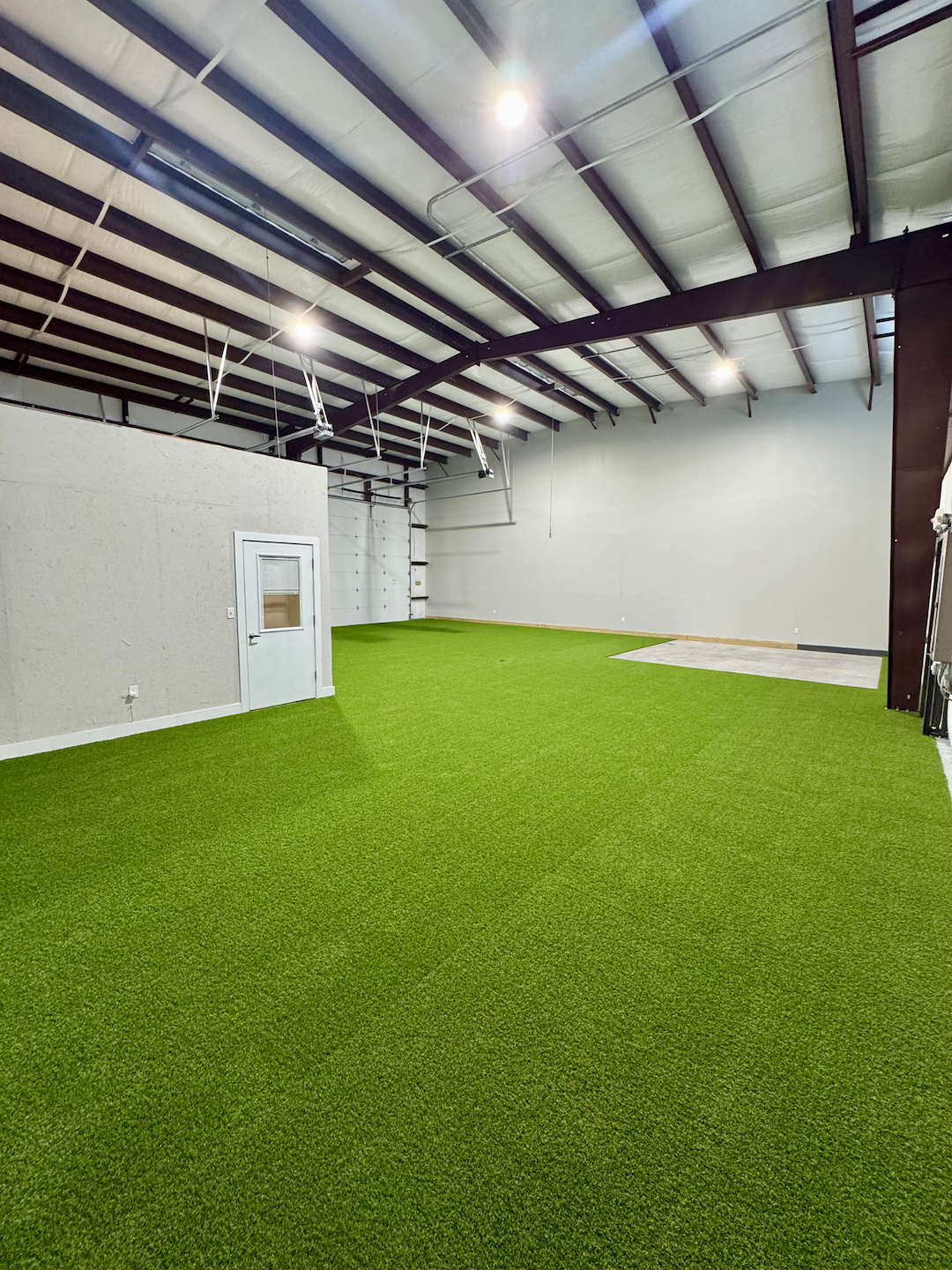 For this project, we transformed an empty commercial warehouse into a high-performance training facility with full-building artificial turf installation. We installed commercial-grade performance turf designed for strength training, functional workouts, sled work, and golf practice.