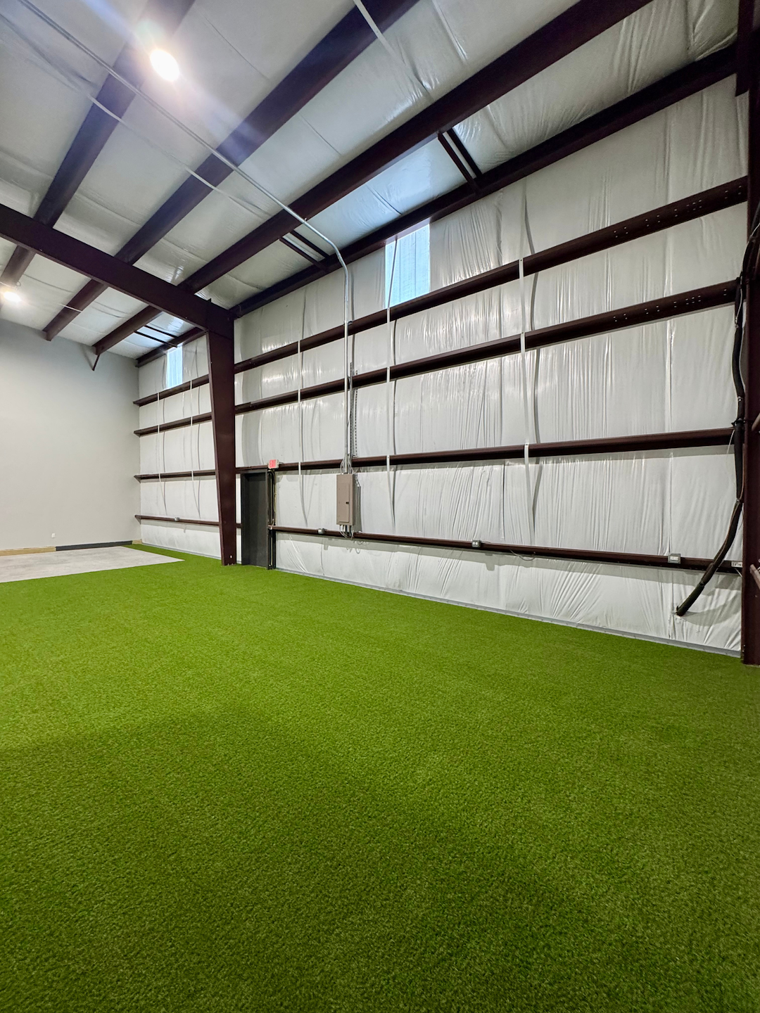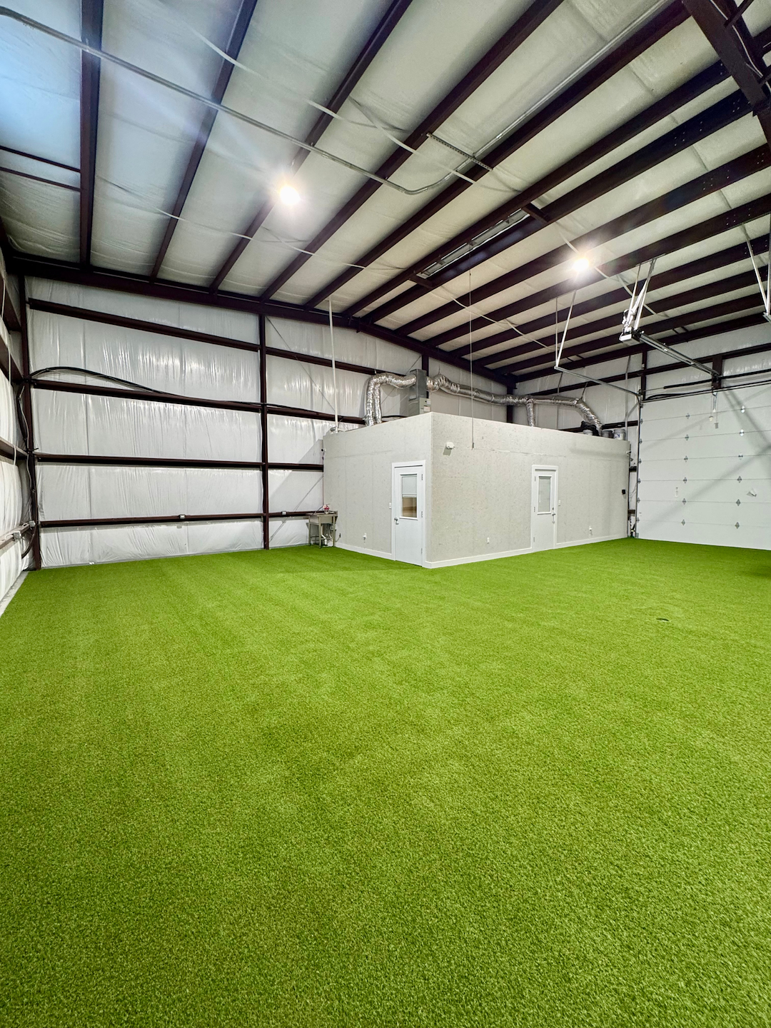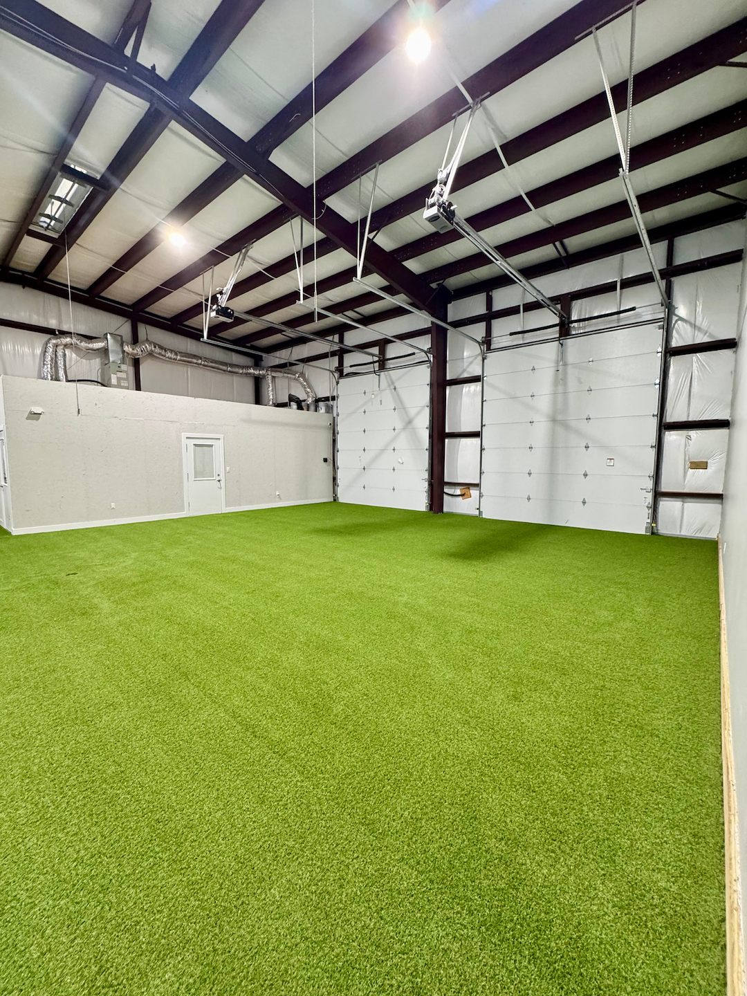 For this project, we transformed an empty commercial warehouse into a high-performance training facility with full-building artificial turf installation. We installed commercial-grade performance turf designed for strength training, functional workouts, sled work, and golf practice.
