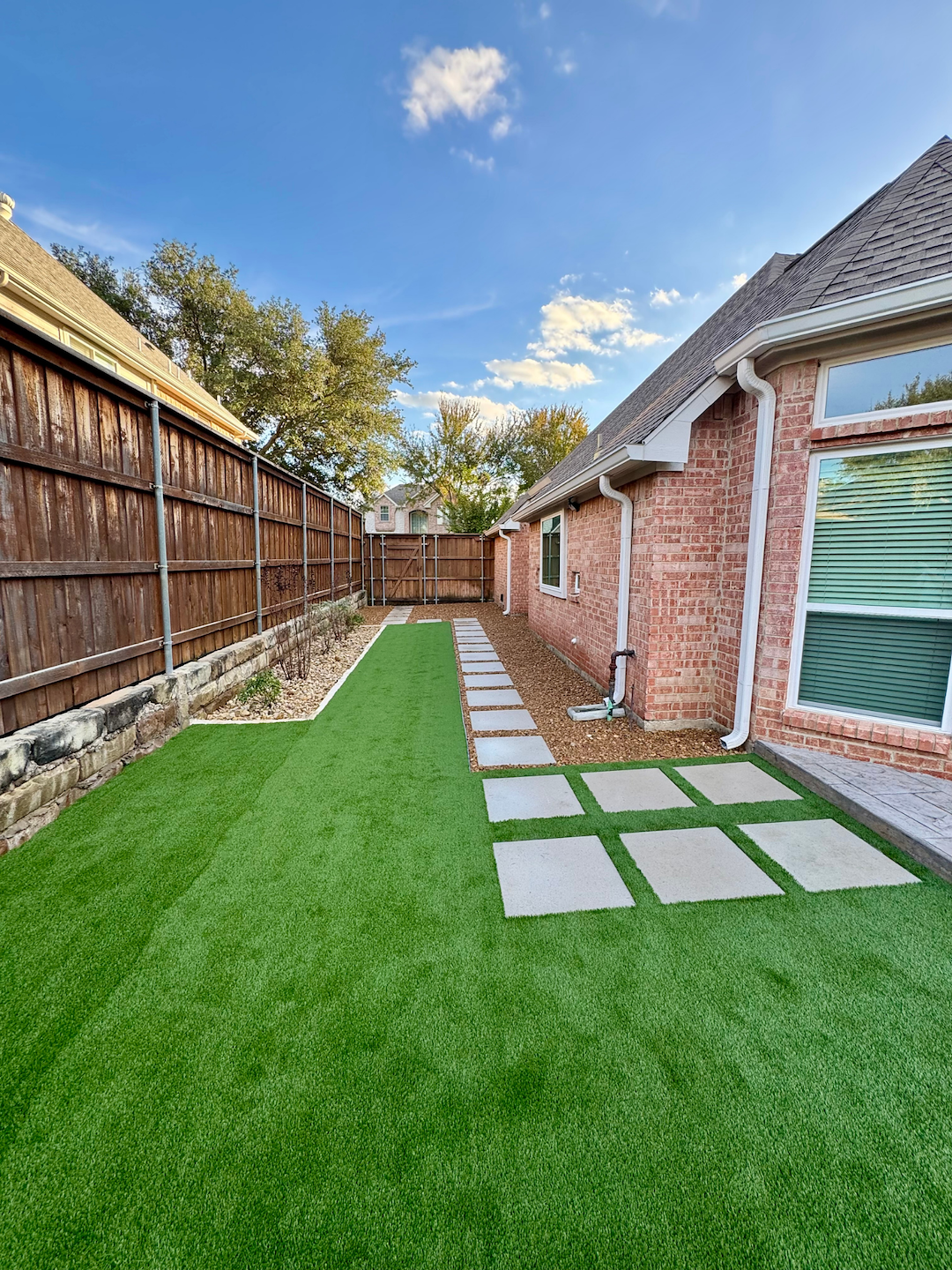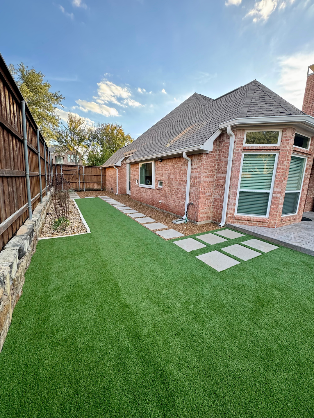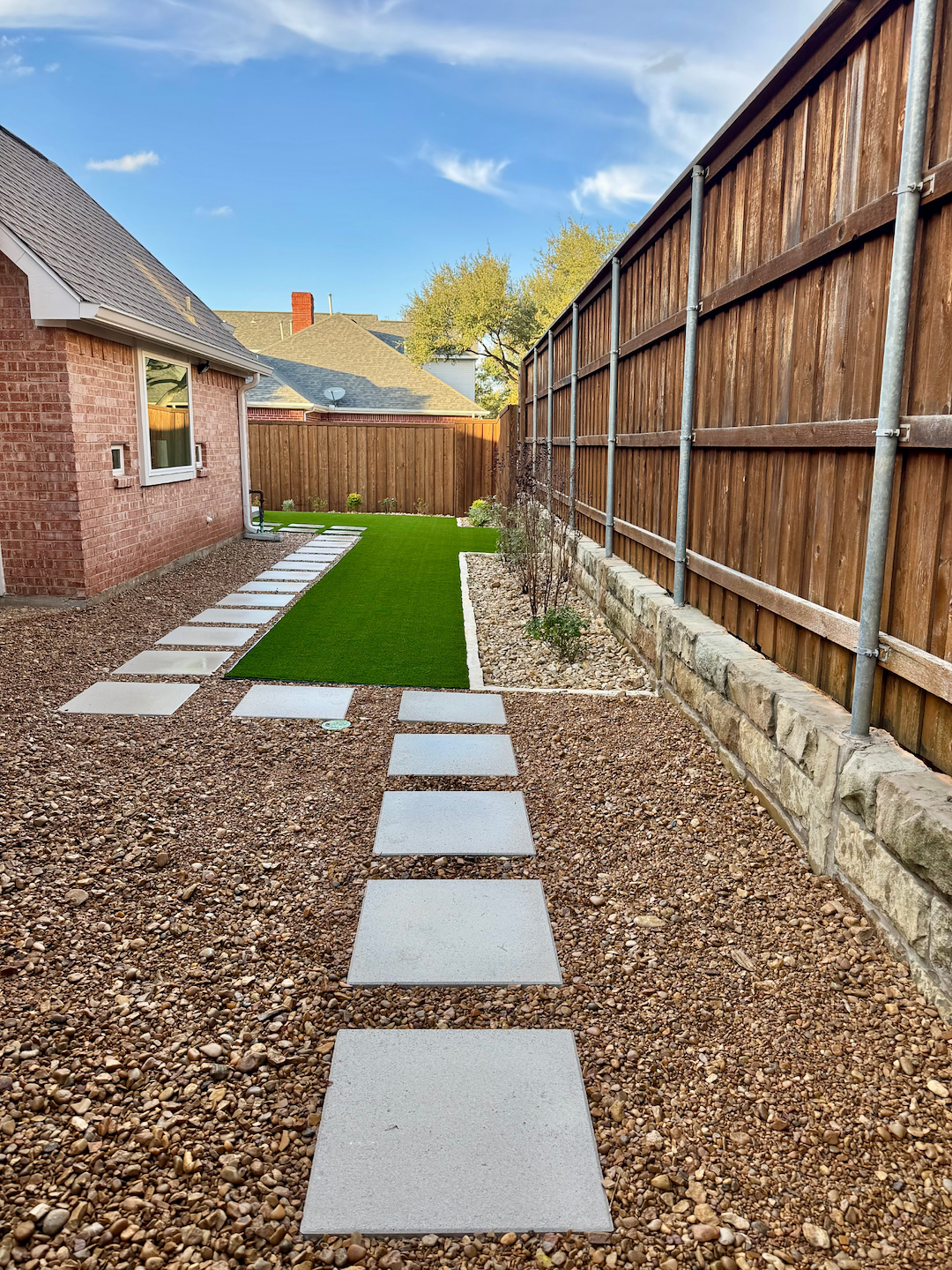 Complete Backyard Overhaul with Pet-Friendly Artificial Turf and Paver Walkway in Plano, TX