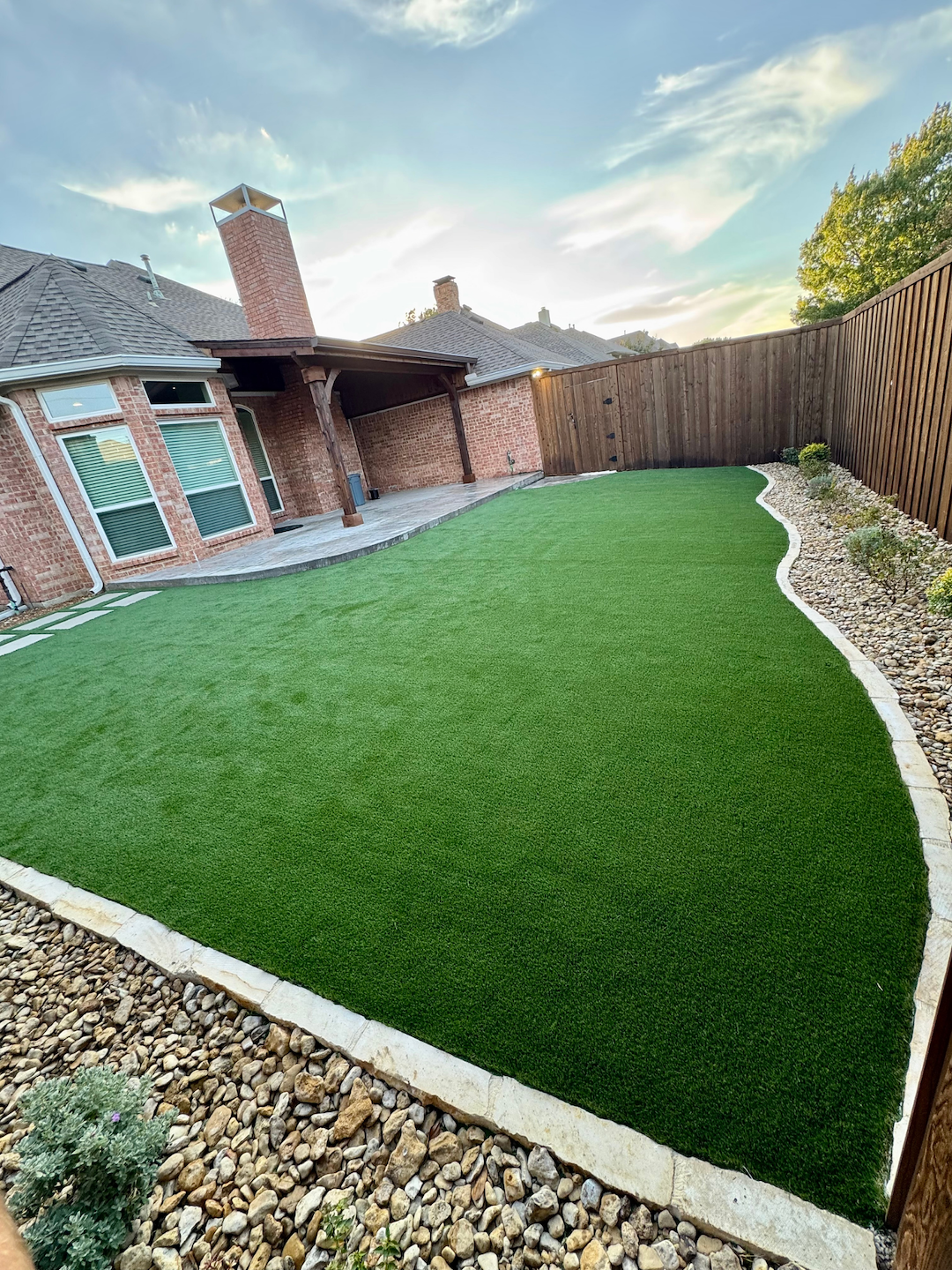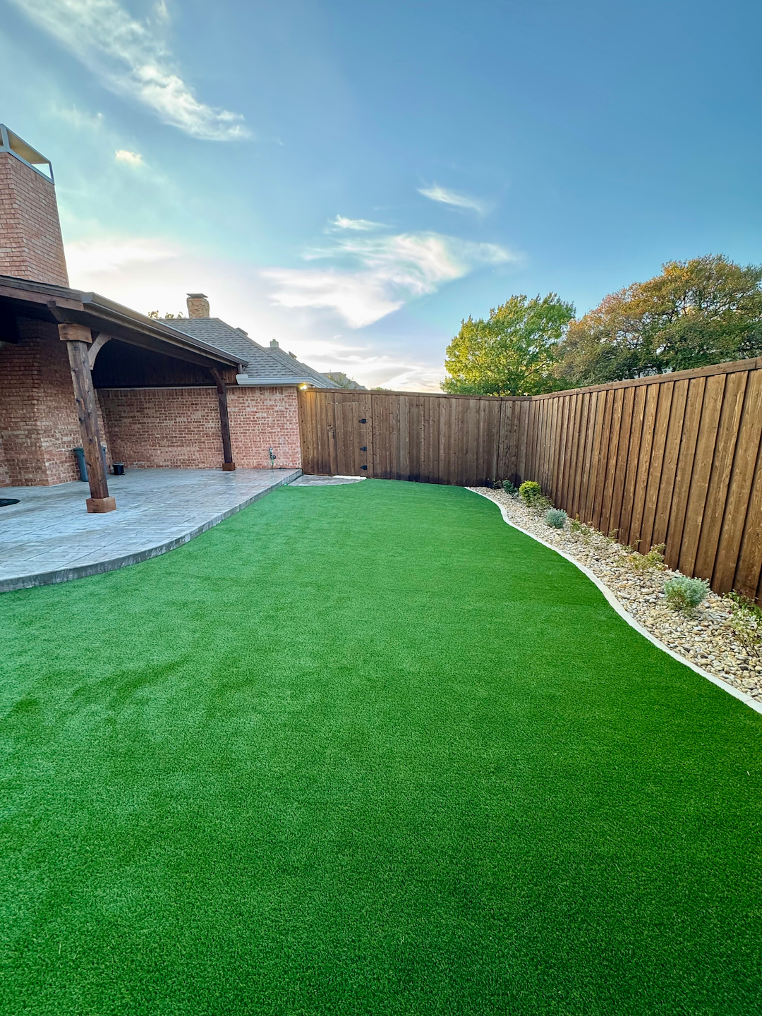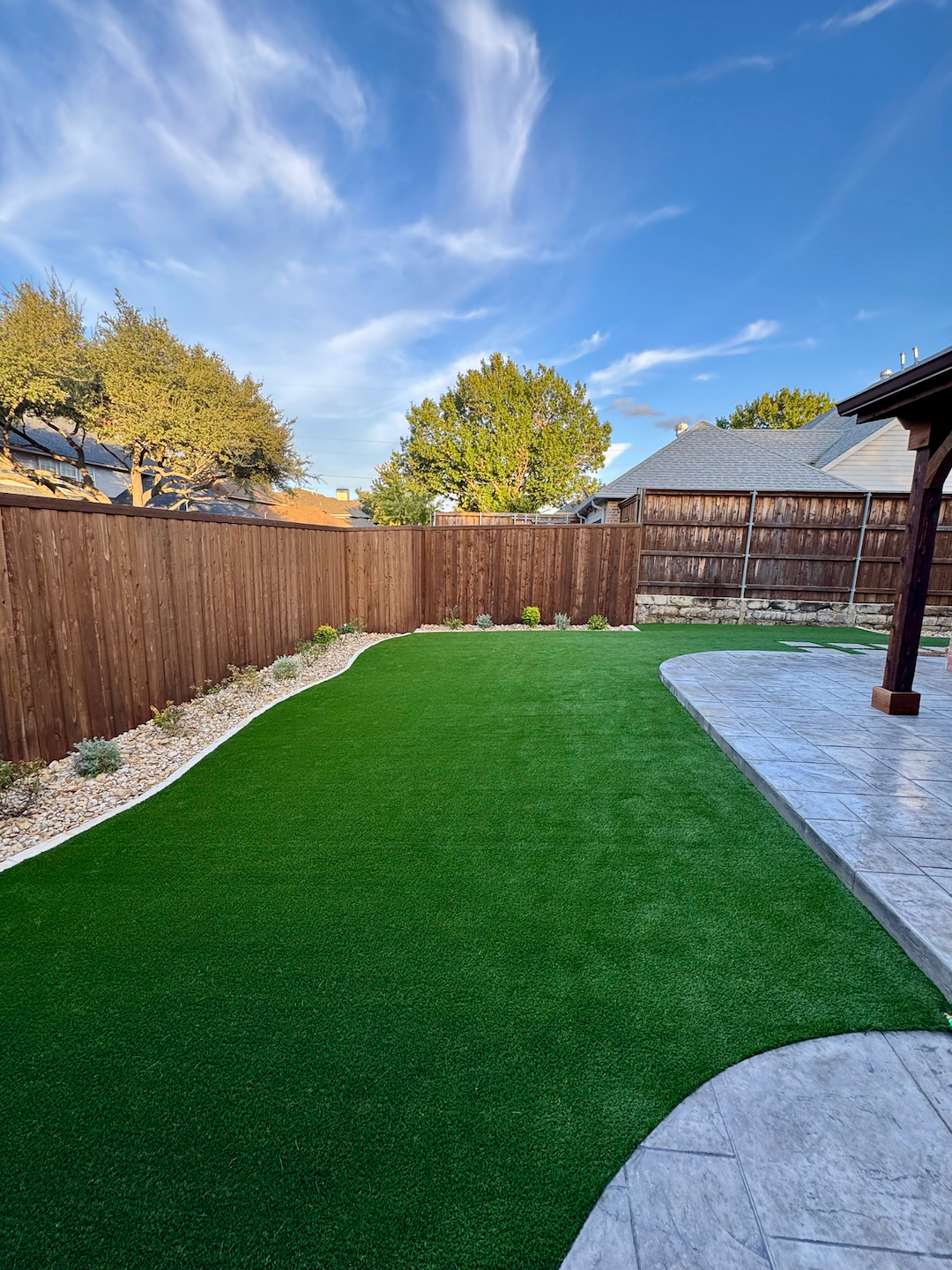For this project, the homeowner wanted a clean, low-maintenance backyard that would look great year-round and provide a durable space for their dog to enjoy. The existing yard had natural grass that struggled to grow evenly and required constant maintenance.