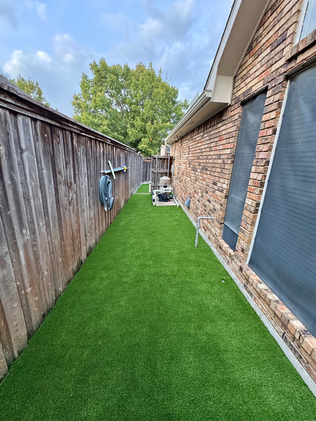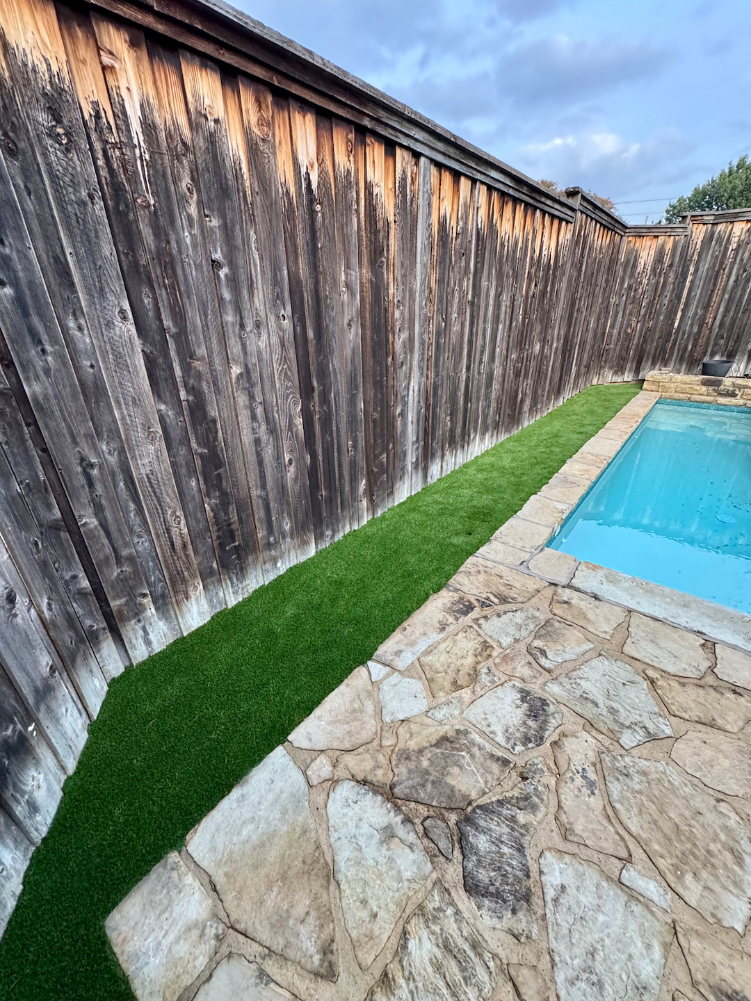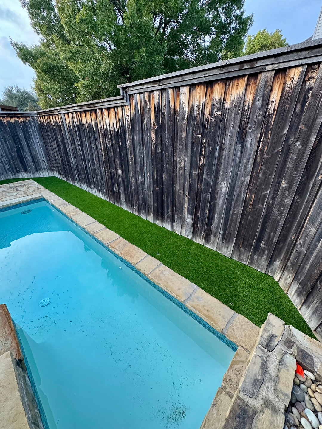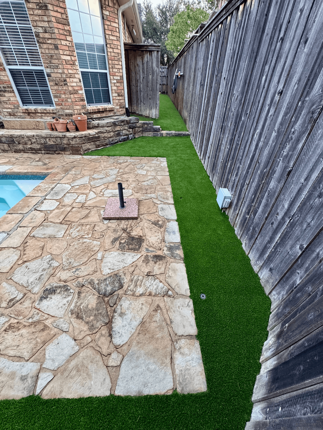 Pet-Friendly Artificial Turf Installation Around Pool and Side Yard in Plano, TX