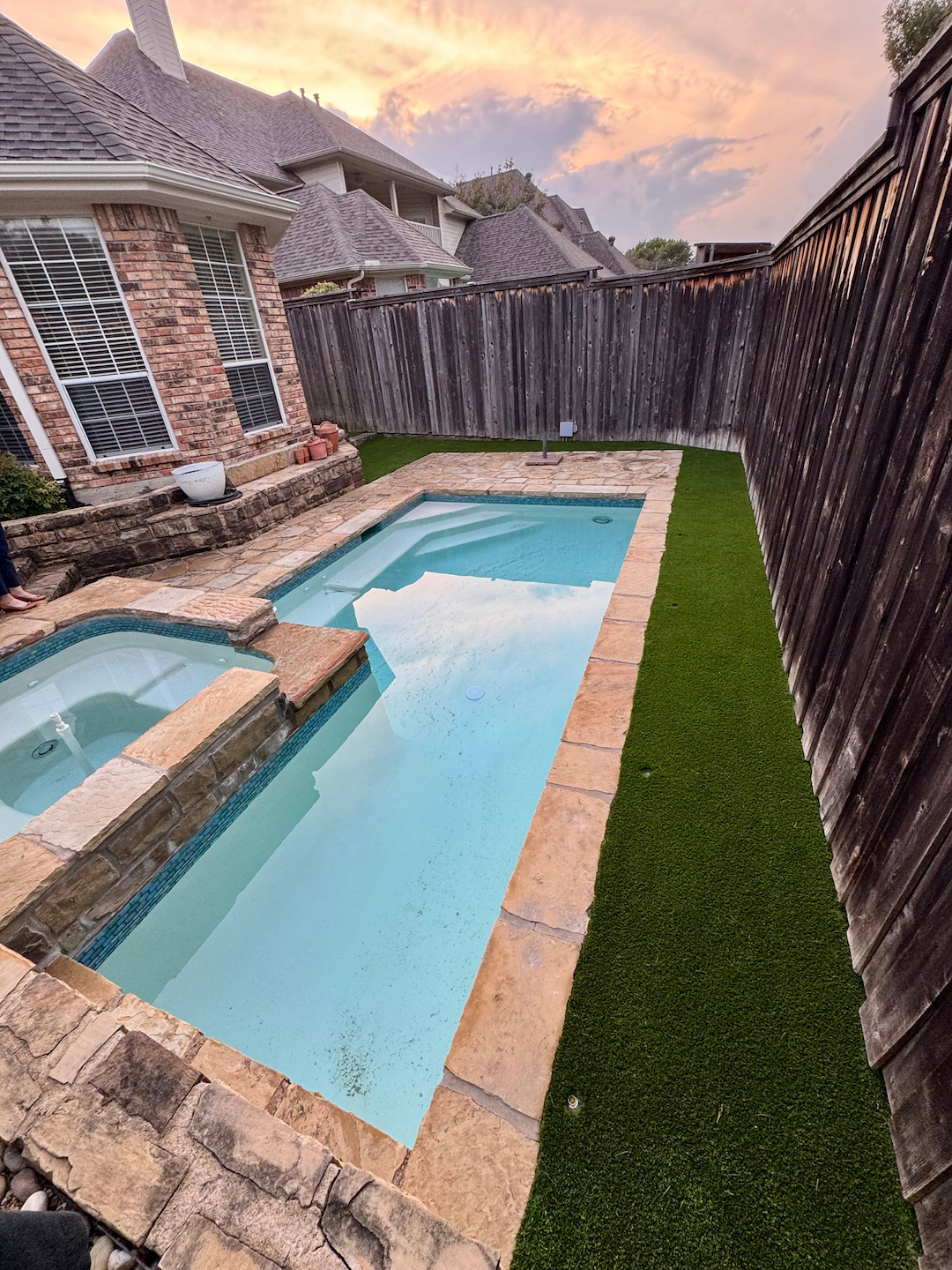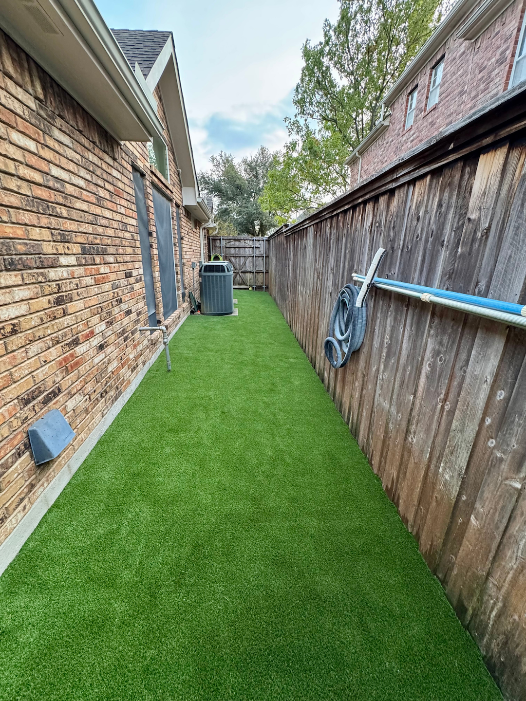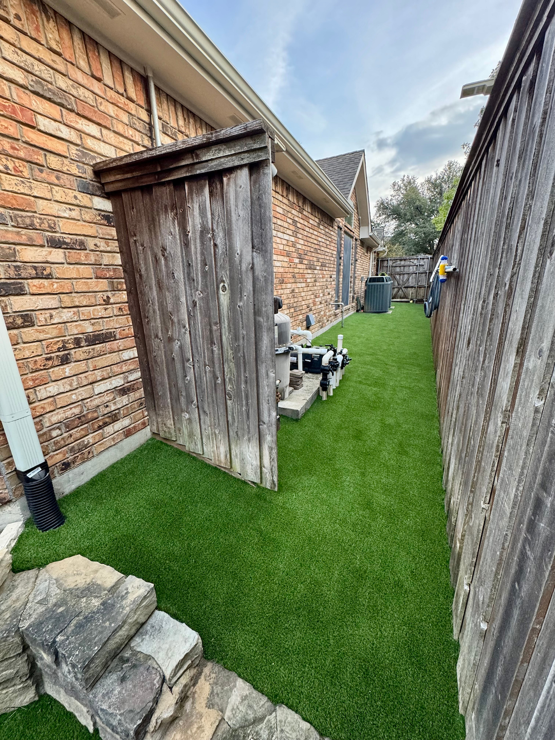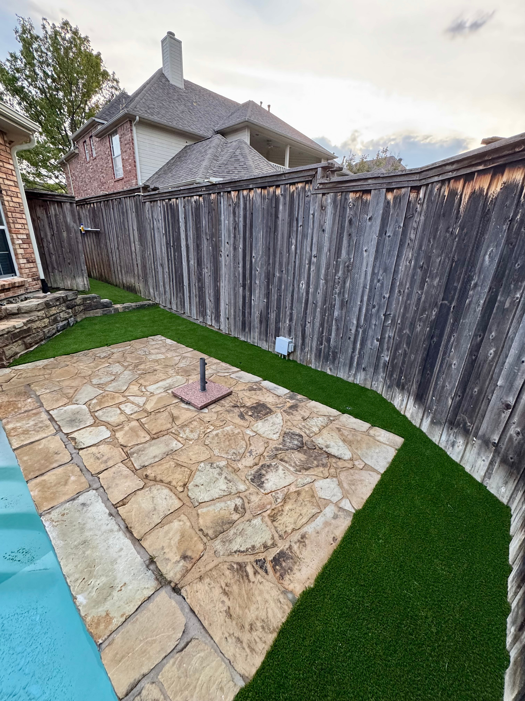 Pet-Friendly Artificial Turf Installation Around Pool and Side Yard in Plano, TX